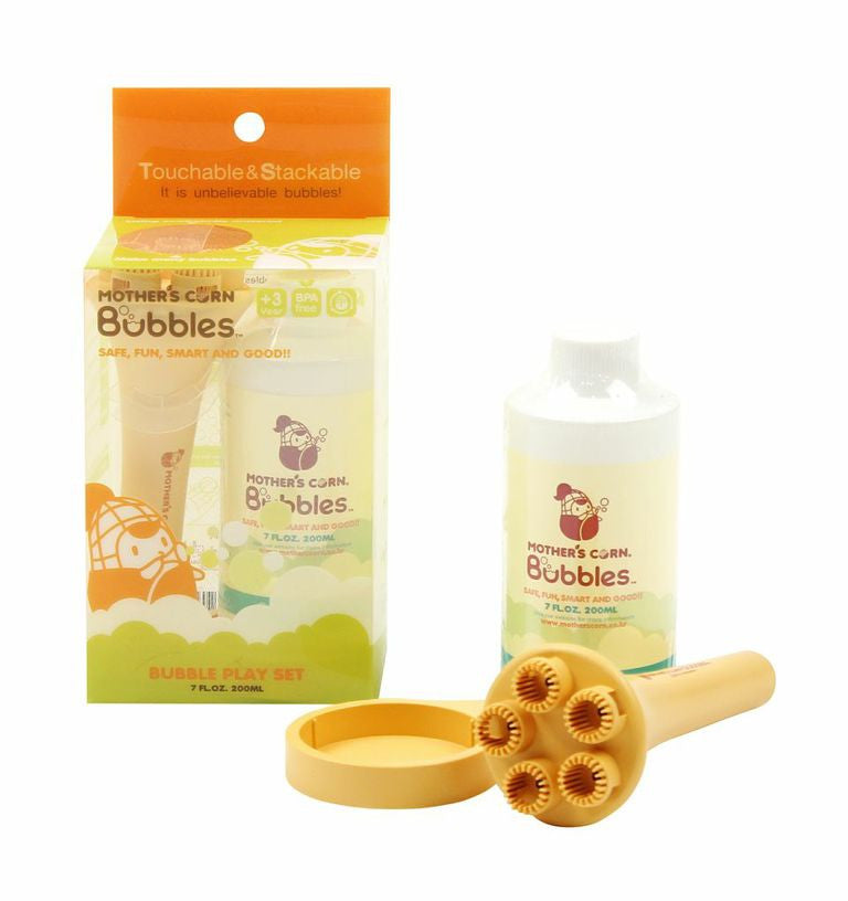 Children love blowing bubbles and it boosts eye-hand coordination, gross motor skills, as well as language development. MOTHER’S CORN Bubbles is a non-toxic, fun, smart and green way to play with bubbles. The set includes 200ml bubble liquid, bubble blowing tool & tray. The bubble liquid is made of natural cellulose extracted from trees, which is generally used for medical or food additives in ice cream or bread. Unique feature of this bubble liquid is you can blow STACKABLE, TOUCHABLE bubbles!