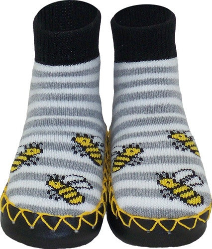 Wrap your kids feet snugly in the warmth and comfort of a sock, combined with the practicality and safety of a moccasin shoe sole.
