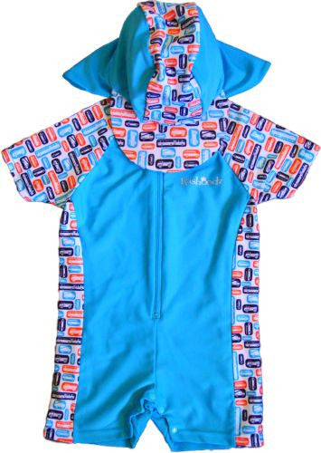Sunburn on the face, neck and ears will be a thing of the past with this striking Rashoodz swimsuit and attachable hat.