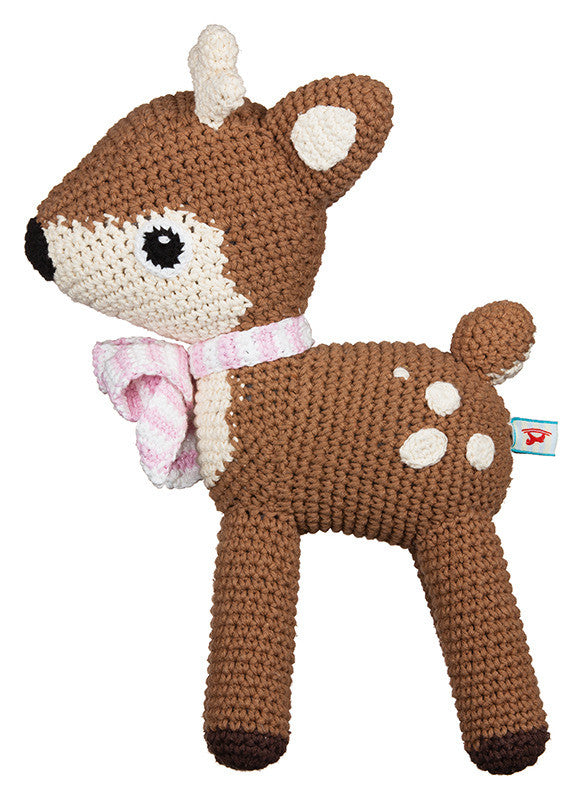 Brand new hand crochet kids toys - Perfect friend for little people , Great toy to make a nursery or even the perfect gift for that special new born . These fabulous hand crochet toys will provide baby/ toddler with hours of entertainment and a friend for bed time . Soft-to-hold but fun to cuddle . Deer stands approx 33cm high Care Instructions : warm hand wash