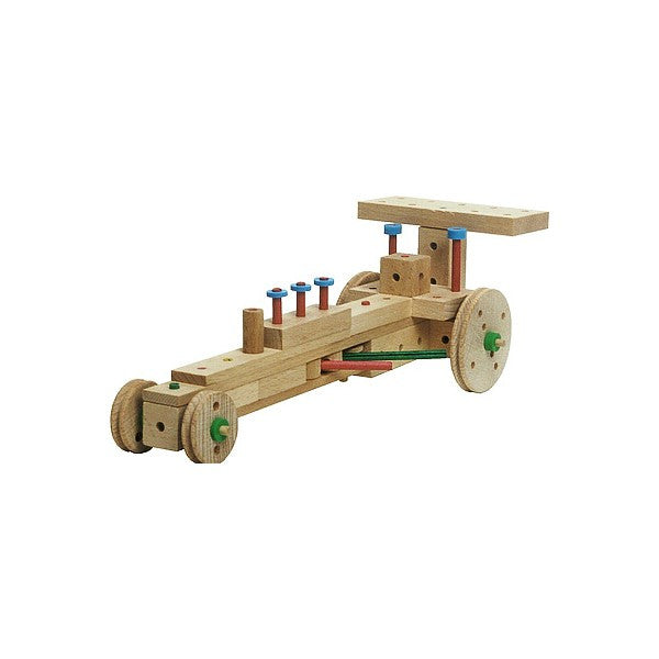Each set has its own assortment of tools: a wooden hammer for assembling the parts and pliers and a wedge to take them apart again. Once the child has constructed her model, she will want to play with it for a while and show it to her friends. At any time she can take her model apart and build another one.