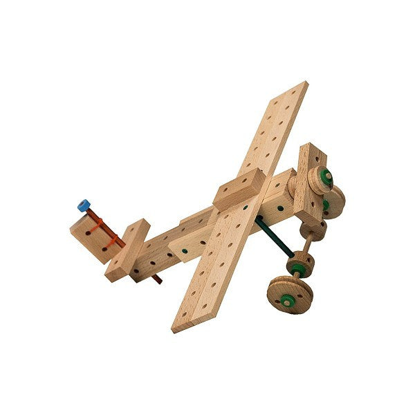 Matador is a construction set with wooden blocks that can be connected via pins. The idea was generated over 100 years ago when a father watched his children getting frustrated while playing with wooden blocks; any complex structure they tried to build simply collapsed. Being an engineer, he designed a toy wooden construction set made of blocks that could be connected with wooden pins. The idea took off and has delighted many generations of children. The possibilities are almost limitless and while each set comes with its own building instructions, Matador will also encourage your child to put together their own ideas.