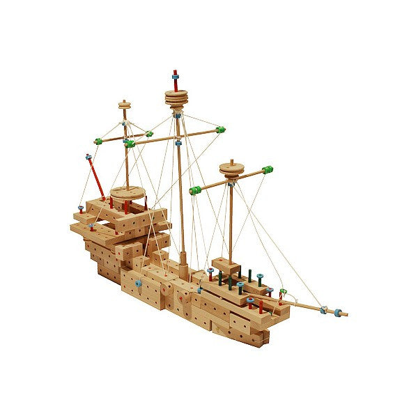 Matador is a construction set with wooden blocks that can be connected via pins. The idea was generated over 100 years ago when a father watched his children getting frustrated while playing with wooden blocks; any complex structure they tried to build simply collapsed. Being an engineer, he designed a toy wooden construction set made of blocks that could be connected with wooden pins. The idea took off and has delighted many generations of children. The possibilities are almost limitless and while each set comes with its own building instructions, Matador will also encourage your child to put together their own ideas.