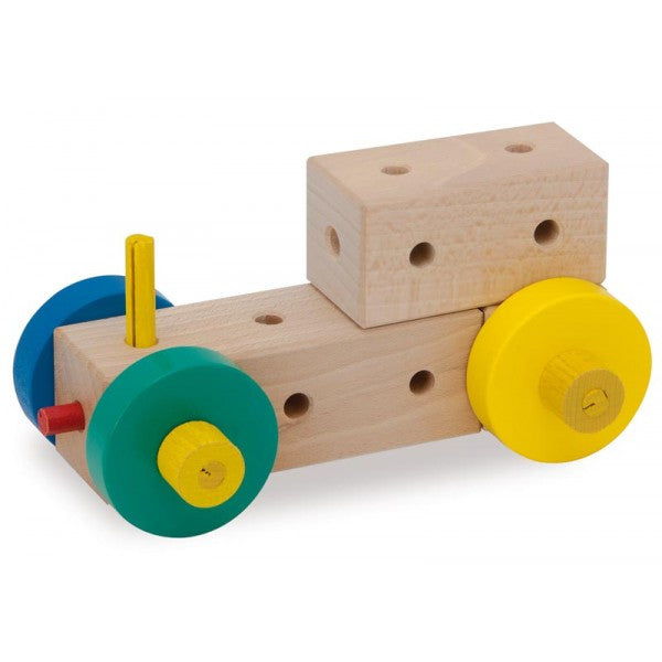 Matador is a construction set with wooden blocks that can be connected via pins. The idea was generated over 100 years ago when a father watched his children getting frustrated while playing with wooden blocks; any complex structure they tried to build simply collapsed. Being an engineer, he designed a toy wooden construction set made of blocks that could be connected with wooden pins. The idea took off and has delighted many generations of children. The possibilities are almost limitless and while each set comes with its own building instructions, Matador will also encourage your child to put together their own ideas.