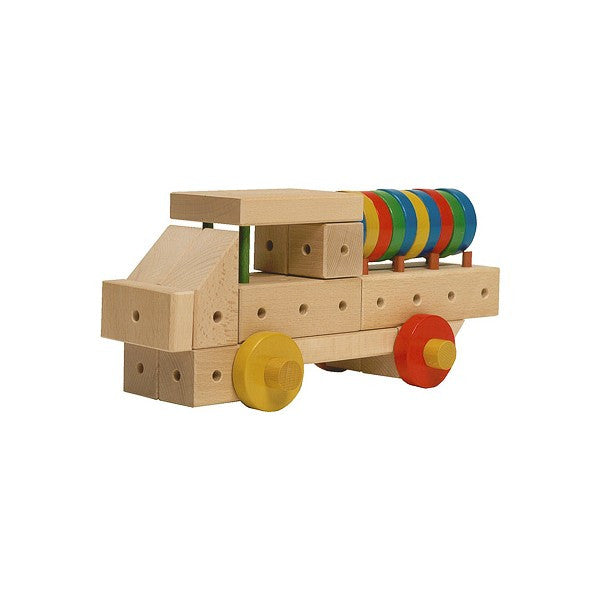 Matador is a construction set with wooden blocks that can be connected via pins. The idea was generated over 100 years ago when a father watched his children getting frustrated while playing with wooden blocks; any complex structure they tried to build simply collapsed. Being an engineer, he designed a toy wooden construction set made of blocks that could be connected with wooden pins. The idea took off and has delighted many generations of children. The possibilities are almost limitless and while each set comes with its own building instructions, Matador will also encourage your child to put together their own ideas.