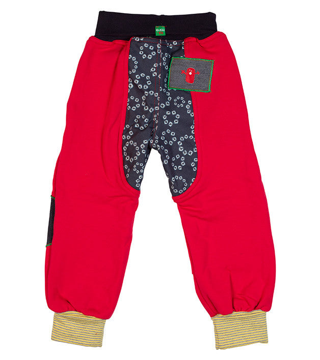 Please note the feature bottom panel will become distressed and build character with wash and wear. Rather than harsh treatments to achieve this look, we're getting the munchkins to do it organically.